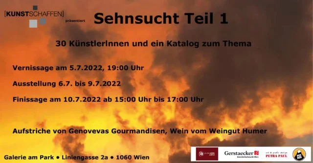 Sehnsucht, Ausstellung und Katalog. Verein Kunstschaffen. Galerie am Park, Wien. 1. Teil: 5. Juli 18:30 bis 11. Juli. 2. Teil: 26. Juli 18:30 bis 1. August.